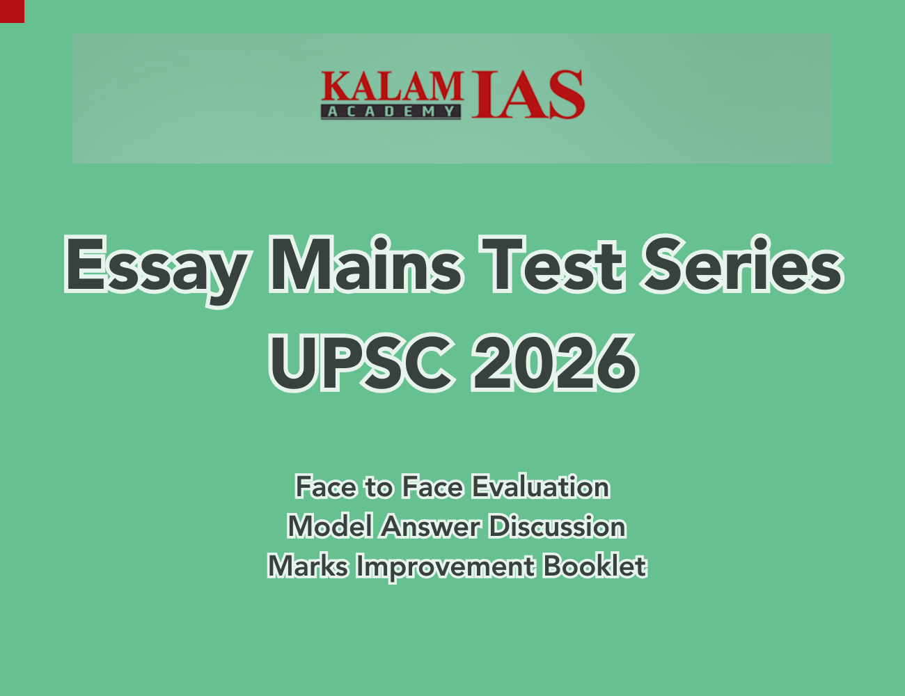 The Kalam IAS UPSC Essay Test Series 2026 is created to guide you through this challenge. It provides a trusted space where you can practice writing essays in exam-like conditions, receive detailed feedback, and steadily improve your presentation. Instead of leaving your Essay Paper to chance, this test series will help you turn it into a strength that supports your overall Mains performance.